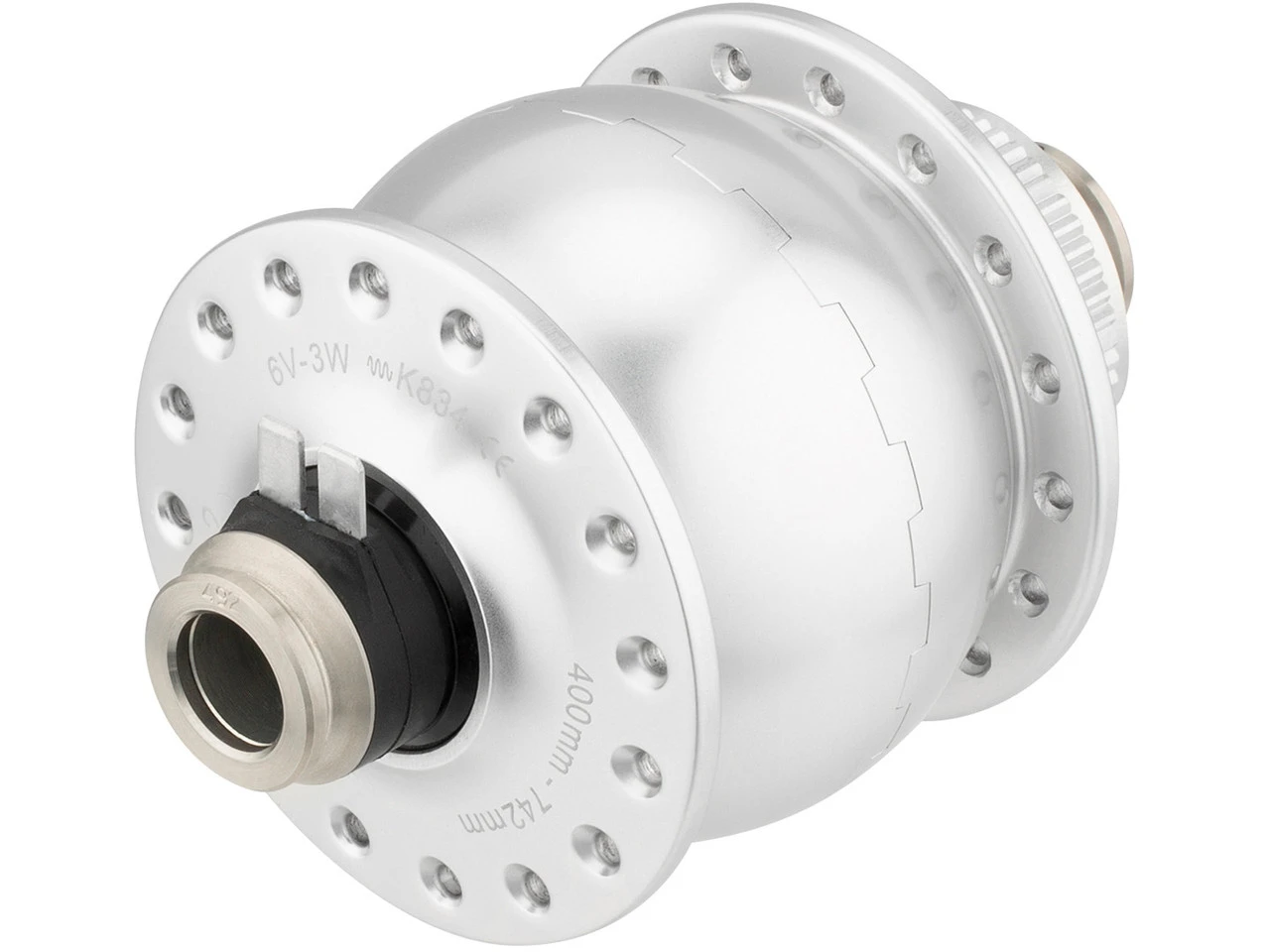 Spezifikationen:Elektrische Leistung:6V/3W (nach StVZO)Wirkungsgrad:65 % bei 15 km/h im 28″ -RadLeistungsaufnahme im Leerlauf:0,5 W bei 15 km/h im 28″ -RadEinbaubreite:12 x 100 mm SteckachseLochzahl:28 Loch, 32 Loch, 36 LochBremssystem:Disc Center LockTechnische Daten:Serie:Son 28Einsatzbereich:Road, Gravel, Touring & Trekking, CityMaterial Nabenkörper:Aluminium (6082-T6)Lagerung:Rillenkugellager 629-2RSH (SKF)Dichtung:Spaltdichtung, Dichtscheiben und DruckausgleichsystemFlanschabstand (L/R):48 mm (23 mm/25 mm)Teilkreisdurchmesser (L/R):54 mm/54 mmSpeichenlochdurchmesser:2 mmAnschluss für Stromausgang:4,8 mm Flachstecker, 2-polig, massefreiFreigaben:Zulassung im Straßenverkehr:JaPrüfziffer:K~~834Kompatibilität:für 16″ bis 29″ Räder (400-742 mm)für 12 mm Steckachsefür 3 mm KoaxialkabelFeatures:für Bremsscheiben mit Shimano Center-Lock-BefestigungNeodym-Eisen-Bor Magnetrotor, 26-poligHohlachse (10 mm) aus kaltverfestigtem, rostfreiem Stahlviel Licht auch bei langsamer Fahrtauch für Lade-Anwendungen mittels Ladegerätsilbern schwarz eloxiertumrüstbar auf 9 mm Schnellspanner mit optional erhältlichem AdapterHerstellernummern:schwarz 24 Loch:402410schwarz 28 Loch:402810schwarz 32 Loch:403210schwarz 36 Loch:403610silber-eloxiert 32 Loch:403290rot 28 Loch:402820rot 32 Loch:403220rot 36 Loch:403620Lieferumfang:1 x Nabendynamo SON Son 28 12 Disc Center Lock1 x Flachstecker