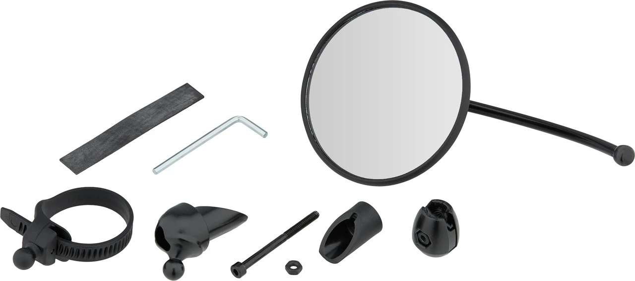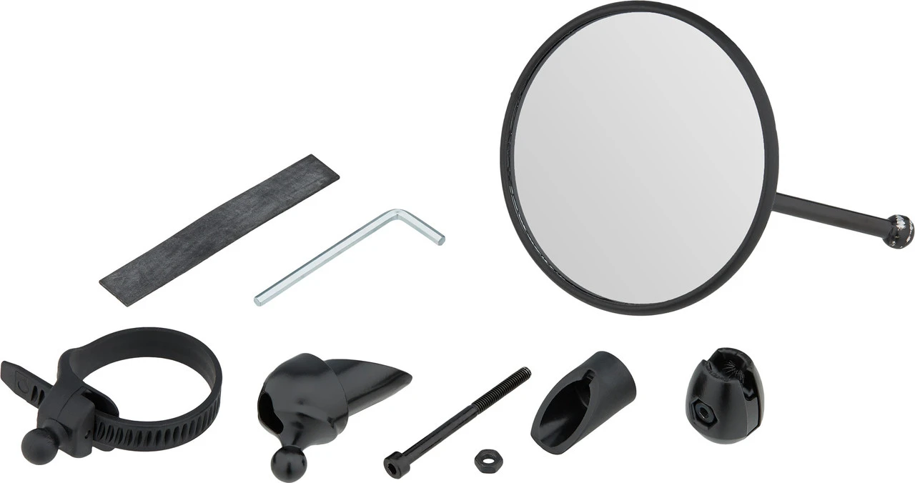 Spezifikationen:Einsatzbereich:City, Touring & TrekkingMaterial:Kunststoff (Gehäuse), Aluminium (Stange)Spiegelfläche:80 mm2Montage:universelles Befestigungssystem oder InnenlenkerbefestigungFeatures:großes Blickfeldeinklappbarbesonders stabilnichtrostende MaterialienSpiegelglas mit Splitterschutzmit starker Spiegelwölbung für großes SichtfeldAusführungen:kurz: