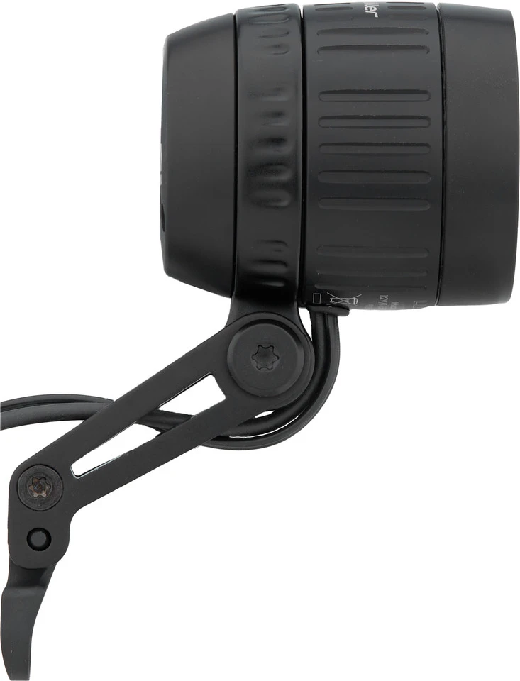 Spezifikationen:Ausführung:Frontlicht (weiß)Montage:GabelkroneLeuchtmittel:LED (6)Leuchtkraft:170 Lux (Fernlicht), 120 Lux (Abblendlicht)Betriebsmittel:E-Bike-AkkuTechnische Daten:Leuchtmodi:Abblendlicht, Fernlicht, LichthupeSpannung:9 – 48 VKabellänge:140 cmMaterial:AluminiumSchalter:Ein / Aus / Fernlicht / LichthupeFreigaben:Zulassung im Straßenverkehr:Ja, für Fahrräder (nach §67 StVZO)Prüfziffer:K~~1506Features:E-Bike-Frontlicht aus Aluminium mit 170 Lux starkem Fernlicht zur Festmontage an der Gabelkrone120 Lux Beleuchtungsstärke im Abblendmodusgleichmäßig ausgeleuchtetes, weites Lichtfeldfarbig leuchtender Taster zum Wechsel zwischen Abblendlicht, Fernlicht und LichthupeTaster-Befestigungsschelle für Lenker mit 22 mm Durchmesser oder zur Direktmontage an Bremshebeln von Magura und TektroAnbringungsmöglichkeit für einen FrontreflektorAkku-Nennleistung für Fernlicht 16 WTechnologie:IQ-Technik