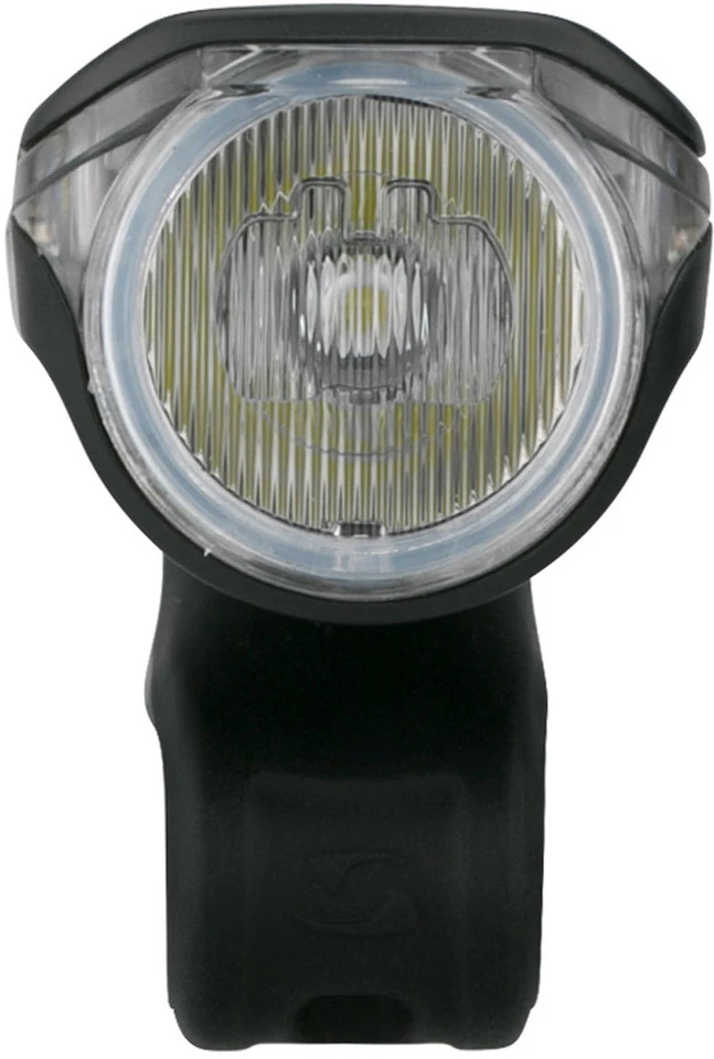 Spezifikationen:Ausführung:Frontlicht (weiß)Montage:Lenkerhalterung (22 – 32 mm)Leuchtmittel:Osram LEDLeuchtkraft:60 LUX (Standard-Modus), 30 LUX (Mid-Modus), 18 LUX (Eco-Modus)Leuchtdauer:4 Stunden (Standard-Modus), 7 Stunden (Mid-Modus), 10 Stunden (Eco-Modus)Leuchtweite:70 mBetriebsmittel:Akku (Li-Ion), integriertTechnische Daten:Leuchtmodi:Standard-Modus, Mid-Modus, Eco-ModusLadestandanzeige:Zweistufiger Akku- / LadeindikatorLadezeit:3,5 StundenSchutzklasse:Spritzwassergeschützt nach IPX4Material:KunststoffStandlicht:Ja (abschaltbar)Schalter:Ein / AusFreigaben:Zulassung im Straßenverkehr:Ja, für Fahrräder (nach §67 StVZO)Prüfziffer:K~~1543Features:werkzeugfreie Montagesehr gute seitliche Sichtbarkeit durch light guidesintegrierte Micro-USB Ladefunktion360 Grad verstellbare HalterungEinschaltschutz (Doppelklick für AN)Technologien:Micro-USB Ladefunktion:Frontlicht unkompliziert und überall nachladbar mit USB-Kabel. Ob im Büro, am PC, unterwegs oder zu Hause mittels USB-Ladegerät.