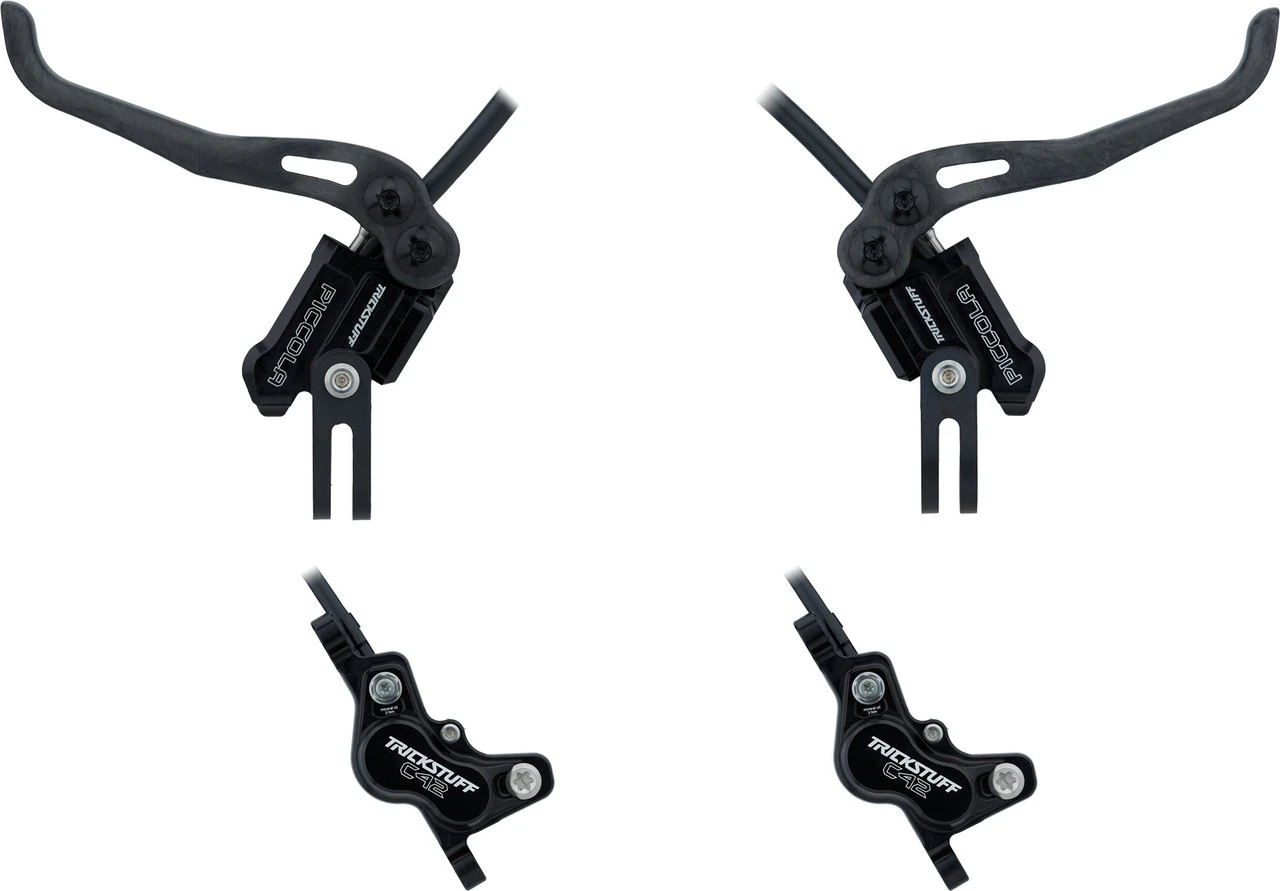 Lieferumfang:1 Paar Scheibenbremsen Trickstuff Piccola Carbon HD, montagefertig befüllt und entlüftet (Vorderrad und Hinterrad)2 Paar Bremsbeläge Trickstuff POWER+2 x Befestigungsschelle Trickstuff Bandschelle2 x Bremsbelagssicherungsschraube Trickstuff4 x Bremssattelschraube Trickstuff M6x162 x Rückstellfeder Trickstuff2 x Clip Trickstuff4 x Unterlegscheibe Trickstuff M69 x Unterlegscheibe Trickstuff klein1 x Bleed Kit Anschluss Trickstuff M41 x Trinkflasche TrickstuffDirekt mitbestellen:Optional erhältliches Zubehör: